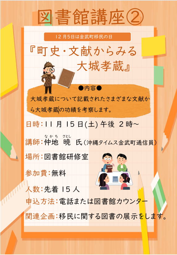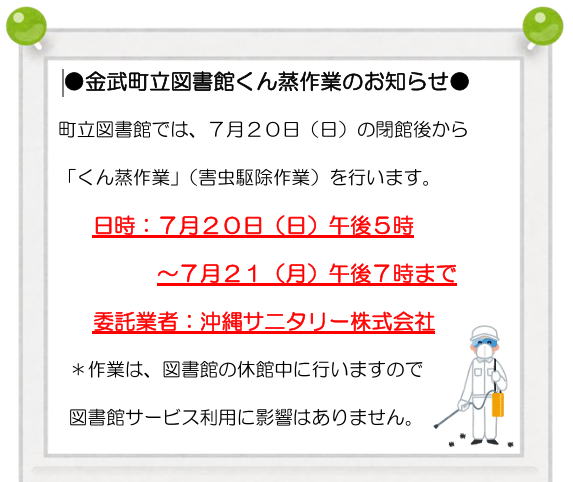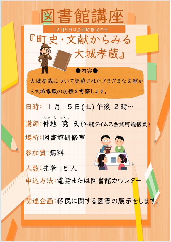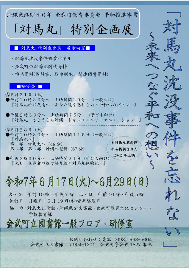 | 金武町立図書館 〒904-1201 沖縄県金武町字金武1827番地 tel:(098)968-5004 fax:(098)968-5032 |
